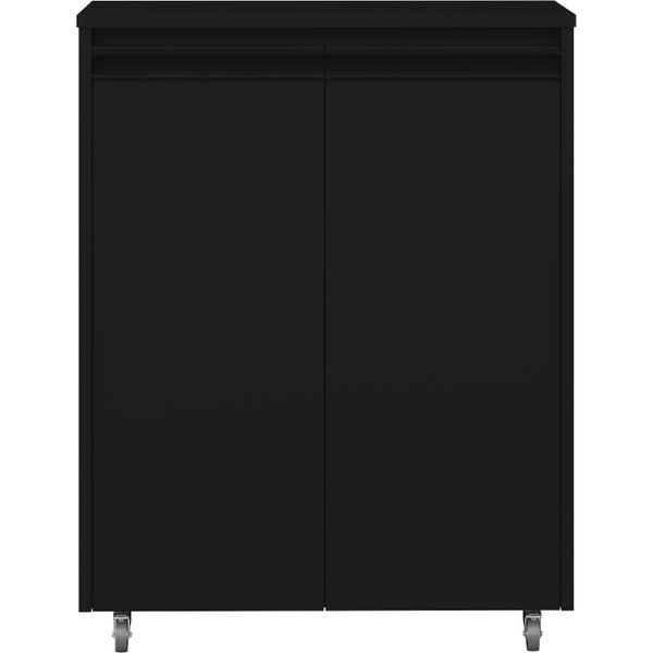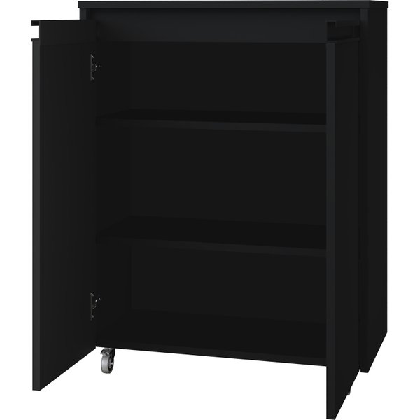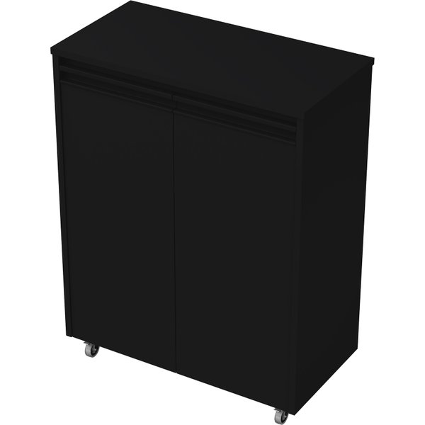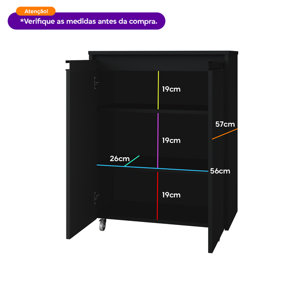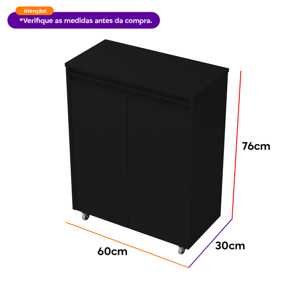 Aparador Buffet Com Rodinhas Multiuso MDF 60x30cm - 2 Portas e 2 Prateleiras Preto