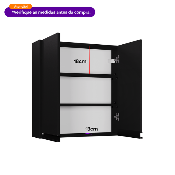 Armário estreito 60cm multiuso em MDF 15mm, perfeito para banheiros, cozinhas e lavanderias. Armário aéreo compacto com 2 prateleiras para guardar remédios, papel higiênico, potes de tempero e outros itens. Revestido com melamínico para maior durabilidade e beleza. Armário vertical ideal para espaços pequenos, oferecendo organização e ótimo acabamento.
