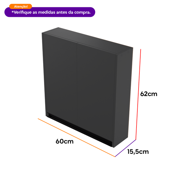 Armário estreito 60cm multiuso em MDF 15mm, perfeito para banheiros, cozinhas e lavanderias. Armário aéreo compacto com 2 prateleiras para guardar remédios, papel higiênico, potes de tempero e outros itens. Revestido com melamínico para maior durabilidade e beleza. Armário vertical ideal para espaços pequenos, oferecendo organização e ótimo acabamento.