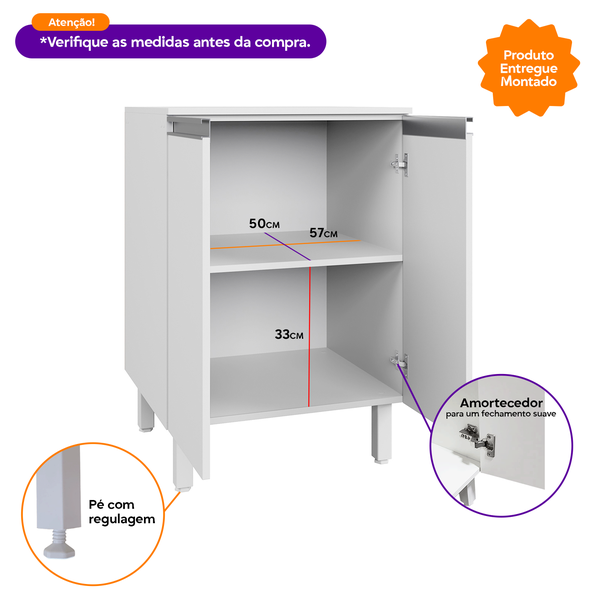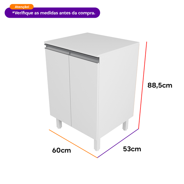 Balcão Multiuso 60cm com puxador perfil amplo espaço em MDF