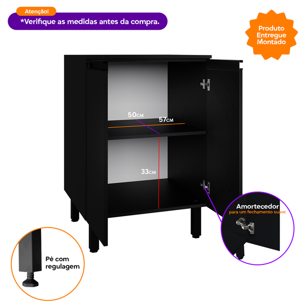 Balcão Multiuso 60cm com puxador perfil amplo espaço em MDF